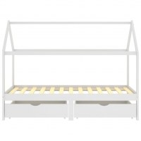 Sengen er smart designet med et stel i træhusstil, hvor du kan ophænge sengegardiner for at give dit barn privatliv. Den kan også bruges som et læsehjørne eller et legehus til dit barn. Dette sengestel er fremstillet af massivt fyrretræ, hvilket gør det yderst robust og holdbart. De stærke lameller tilbyder den nødvendige støtte og er yderst komfortable. De medfølgende sengeskuffer giver rigelig med opbevaringsplads til tøj, legetøj, mv., så værelset holdes rent og pænt. Hjulene glider nemt på gulvtæpper og trægulve. Sengestellet er egnet til en madras, der måler 90 x 200 cm.