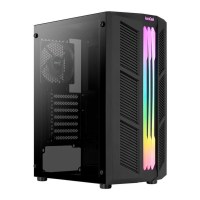 - Stilfuldt sort kabinet med front-RGB og side i hærdet glas
