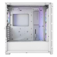 - Elegant hvidt gaming‑kabinet med RGB‑belysning