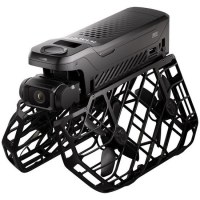 - Stilrent sort design med beskyttende gitter omkring propeller