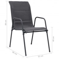 De behagelige stole har en pulverlakeret stålkonstruktion i høj kvalitet. Takket være det stærke textilenestof med vandtæt polstring er disse stole yderst behagelige, vejrbestandige og lette at rengøre. Stolene kan også stables for at spare plads, når de ikke er i brug. Slap af og nyd dit udendørsområde på disse behagelige og holdbare spisebordsstole til haven.