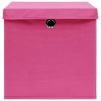 Opbevaringskasser med låg 4 stk. 28x28x28 cm pink