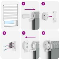 - To måder at montere på: Du kan sætte zebrarullegardinet fast på væggen eller vinduet med skruer eller uden at bore ved hjælp af klembeslag, alt efter dine behov.