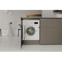 Skab et strømlinet køkken eller bryggers med denne indbyggede vaskemaskine fra Whirlpool. Med 9 kg kapacitet klarer den uden problemer tøj til hele husstanden, mens den forreste luge gør ind- og udtagning let. Den hvide front med display og drejeknap giver et rent udtryk og enkel betjening.