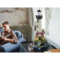 Modellen rummer autentiske små scener, herunder interiør i tårn og hus samt 2 minifigurer, der giver ekstra liv til udstillingen. Det motoriserede lys skaber den ikoniske stråle fra lanternen, der kaster lys over havet og giver et dramatisk udtryk på hylden eller i reolen.
