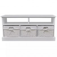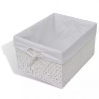 Den inkluderer tre vævede kurve som alle er meget holdbare. Hver kurv har et stoffor der kan vaskes.