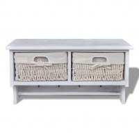 Den har to fletkurve, der begge er yderst robuste. De fire metalkroge giver dig ekstra plads til at hænge ting såsom nøgler, hatte eller handsker. Bøjlestangen er perfekt at hænge håndklæder og vaskeklude på. Sørg for, at hylden monteres i en passende højde.