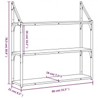 Vægreol med 3 hylder 80x21x78,5 cm konstrueret træ røgfarvet eg