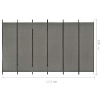 6-panels rumdeler 300 x 180 cm antracitgrå