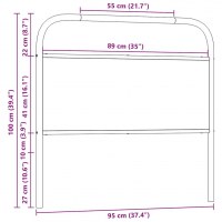 Sengegavl 90 cm stål og konstrueret træ røget egetræsfarve