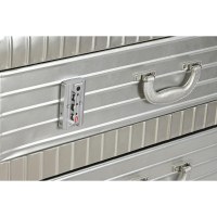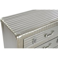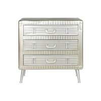 Kommoden kombinerer metal med træ/MDF for et solidt og dekorativt møbel. Den byder på skuffer til nem organisering, så hverdagens ting kan gemmes væk og være lige ved hånden. Den sølvfarvede overflade giver et moderne twist, som let matcher mange farver og materialer i hjemmet.