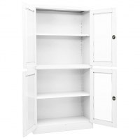 Kontorskab 90x40x180 cm stål og hærdet glas hvid