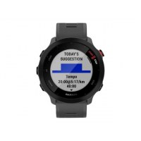 Forerunner 55 har kalender- og appmeddelelser, fjernstyring af musik og Body Battery, så du kan se dit energiniveau. Skærmen er en farve Memory‑in‑Pixel med kemisk hærdet glas, som er let at aflæse. Batteriet rækker op til 14 dage i smartwatch-tilstand og op til 20 timer med GPS. Uret er vandtæt og leveres med udskifteligt silikonebånd med spænde.