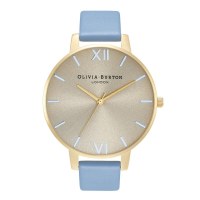 - Tidløst design med gylden skive og blå rem